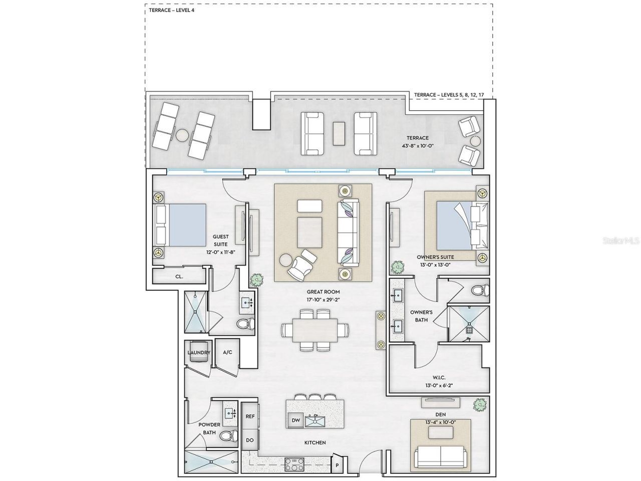 Pre-Construction. To be built. Positioned on the 10th floor, Residence 1005 offers expansive views across The Bay Sarasota Park and Sarasota Bay, blending elevation with a strong visual connection to the waterfront below. This Bay residence features an open, light-filled interior designed to maximize views and indoor-outdoor living. The contemporary kitchen is appointed with European cabinetry, quartz countertops and premium appliances, opening to a spacious great room and private terrace. The primary suite provides a serene retreat with a spa-inspired bath, while additional bedrooms and a den offer flexibility for guests, work or leisure. Residents enjoy access to a comprehensive suite of amenities at 1000 Boulevard of the Arts, along with walkable access to Sarasota's cultural venues, waterfront parks, marina and downtown lifestyle.