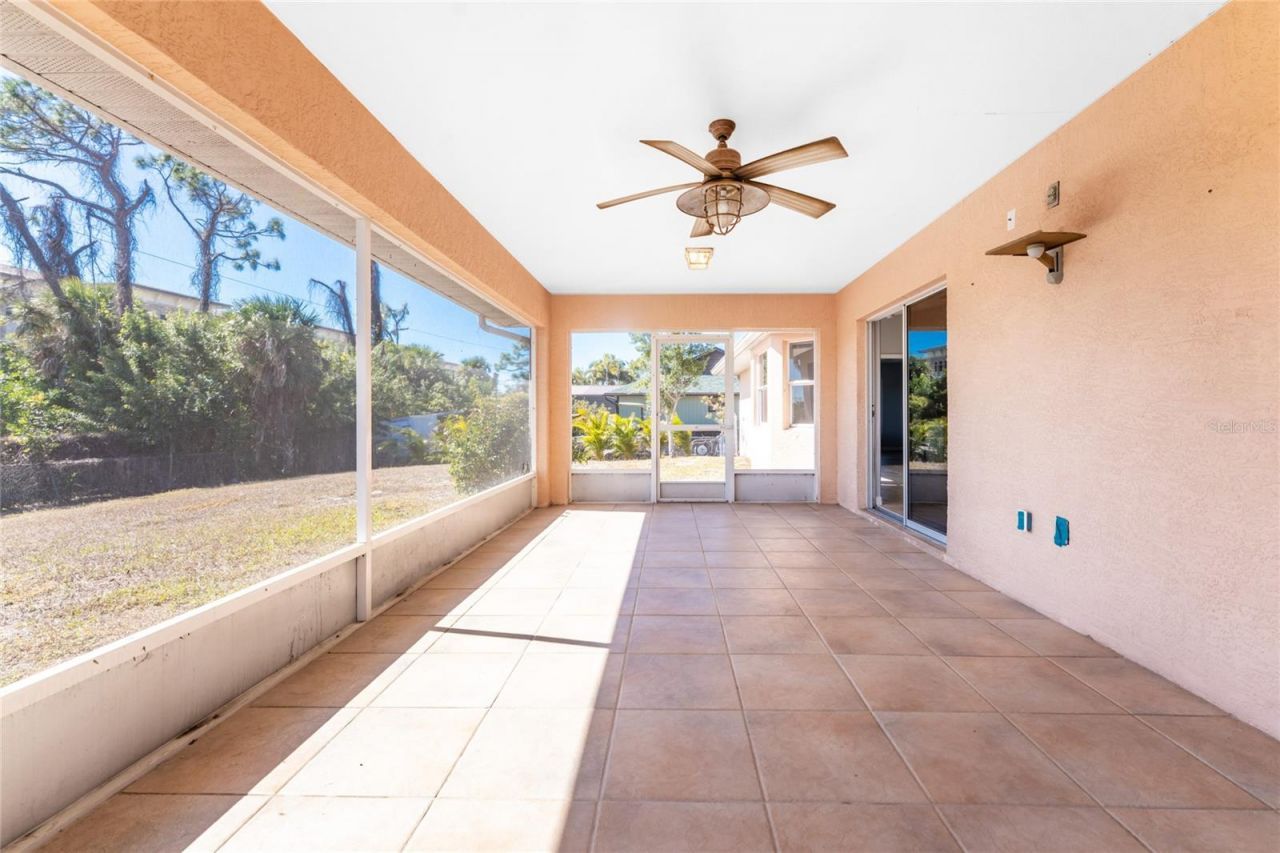 This well located home in Bay Harbor Estates places you just minutes from Englewood Beach, Cedar Point Environmental Park, and Englewood Sports Complex, making it easy to enjoy beaches, nature trails, and year round recreation. A large screened front porch welcomes you inside this well appointed split floor plan three bedroom, two bathroom home with a screened two car garage that is truly move-in ready. Tile flooring flows throughout the main living areas with luxury vinyl plank in the bedrooms, making maintenance simple and practical for everyday living. The great room features vaulted ceilings and opens to the kitchen and dining areas, with sliding glass doors leading to the screened lanai for easy indoor outdoor enjoyment. The kitchen offers abundant cabinet and countertop space, a pantry, raised breakfast bar, and a bright adjoining nook with a bay window that brings in plenty of natural light. The spacious primary suite features a bay style wall, tray ceiling, walk-in closet, and an ensuite bathroom with a tiled walk in shower. Both guest bedrooms are generously sized with vaulted ceilings and reach in closets, and one provides convenient sliding door access to the lanai. The guest bathroom includes a tiled tub and shower combination with glass shower doors. Outdoors, the fully tiled and screened lanai offers a comfortable space to relax while overlooking the fully fenced backyard, perfect for pets or outdoor enjoyment. Bay Harbor Estates remains a popular Englewood neighborhood with no HOA and is conveniently located near shopping, dining, beaches, boat ramps, kayak launches, and medical facilities, making this home at 1053 Bay Harbor Drive an excellent choice for seasonal residents, first time buyers, or those seeking an investment opportunity in a great location.