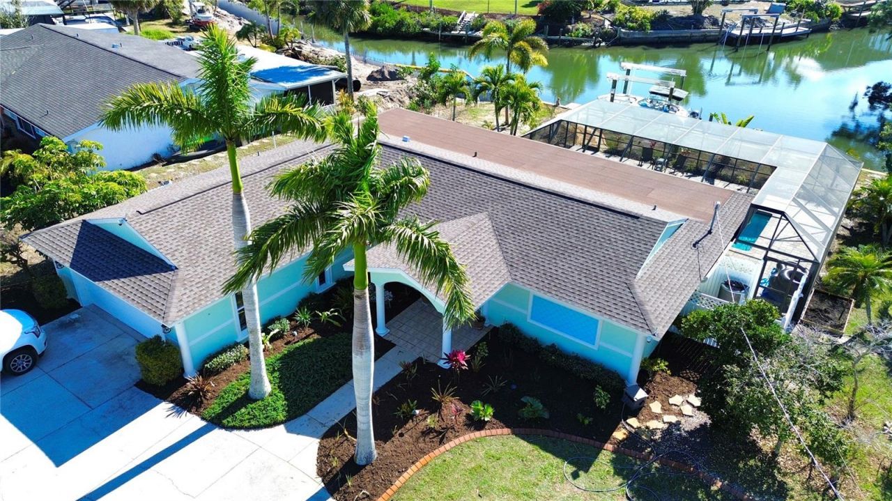 Welcome to 'Sunset Point on Lemon Bay where refined coastal living meets an effortless boating lifestyle-just steps from your own backyard. Set along 85 feet of premier saltwater frontage, this exceptional residence overlooks an extra-wide canal with immediate access to Lemon Bay, placing open water within minutes of departure. A brand-new 13,000-lb boat lift and 35' dock create the ultimate setup for boating enthusiasts, while nightly sunset views and frequent visits from manatees and native wildlife elevate the experience to something truly special. Arriving home, an oversized circular driveway framed by two majestic Royal Palms sets a tone of understated grandeur. Inside, the home has been meticulously updated with no detail overlooked-expansive marble tile flooring, crown molding, wide baseboards, and seamless indoor-outdoor living through pocketing sliders from both the living and dining areas. Designed for entertaining, the outdoor living space is nothing short of spectacular. A massive 1,850 sq ft screened enclosure surrounds the heated, recently resurfaced pool, complemented by a covered brick-paver lanai and fully equipped summer kitchen-perfect for hosting sunset gatherings after a day on the water. A pool-access bath adds convenience and function for guests. The modern coastal kitchen features marble countertops, stainless steel appliances, a generous breakfast bar, chic pendant lighting, and designer tile backsplash, seamlessly connecting to the home's open living areas. A split-bedroom layout ensures privacy, while the primary suite offers a tranquil retreat complete with a private sitting room and French doors leading to the backyard oasis. The spa-inspired en-suite bath showcases dual vanities, granite countertops, and a seamless glass shower. Recent upgrades include a new roof (2022), new A/C (2024), new sprinkler system (2024), new pool heater (2024), fresh interior and exterior paint (2024), and the convenience of city water and sewer. The bonus space in the master bedroom could easily be converted to a third bedroom! Perfectly positioned in a rare neighborhood of estate-sized homes and properties, this residence offers both privacy and proximity-just 3 miles to historic Dearborn Street with its farmers markets, car shows, live entertainment, dining, and boutique shopping, minutes to four stunning Gulf beaches, and a short drive to Venice. This is more than a home-it's a waterfront lifestyle defined by sunsets, serenity, and seamless access to the open water. Schedule your showing and experience it for yourself TODAY!