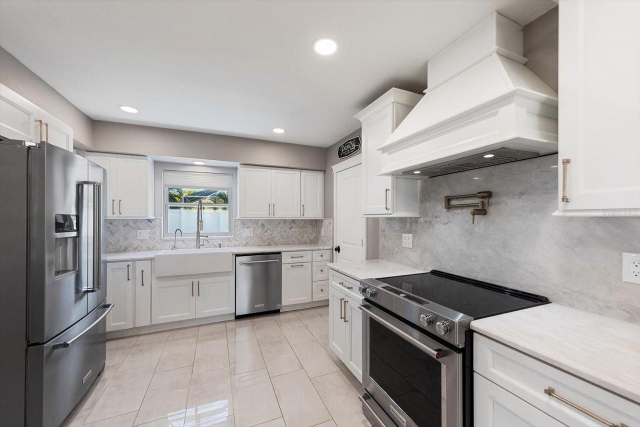 Fully remodeled home with high end luxury finishes in desirable Seminole with no HOA and no Flood Zone. Located on a quiet, cul-de-sac location, walking distance to Seminole schools. This exceptional 3-bedroom, 2-bath residence has been thoughtfully reimagined with high-end designer finishes and extensive energy-efficient upgrades, offering a rare combination of elegance and performance. The centerpiece of the home is a stunning 25-foot chef's kitchen featuring exotic marble countertops, an oversized island with seating for seven, top-of-the-line new appliances, custom cabinetry, beverage center with two under counter refrigerators and a newly constructed butler's pantry - a layout rarely found in homes of this size. Three bedrooms located on the second level, all generously sized. Primary bedroom offers walk in closet and ensuite bath, with double sinks, walk in shower and soaking tub. Every bathroom has been completely renovated with upscale materials and refined finishes. Upgraded flooring, moldings, interior doors and fixtures throughout. A ventless fireplace anchors the living space, while the upstairs laundry room adds modern convenience. Beyond aesthetics, this home was upgraded for long-term efficiency and comfort. Improvements include a new GE mini-split air conditioning system, tankless water heater, newer double-pane windows, newer roof, new attic insulation, and all new appliances. The oversized two-car garage and oversized 0.20-acre lot provide additional flexibility and functionality, plenty of space for a pool and extended outdoor living area. The property also includes a solar energy system that has produced an average electric bill of just $58 per month over the past three years. Located minutes from Gulf beaches, shopping, dining, and top-rated schools, this home offers luxury finishes, meaningful upgrades, and significant energy savings - all without HOA restrictions. Financing opportunity available with assumable 3.62% interest rate!