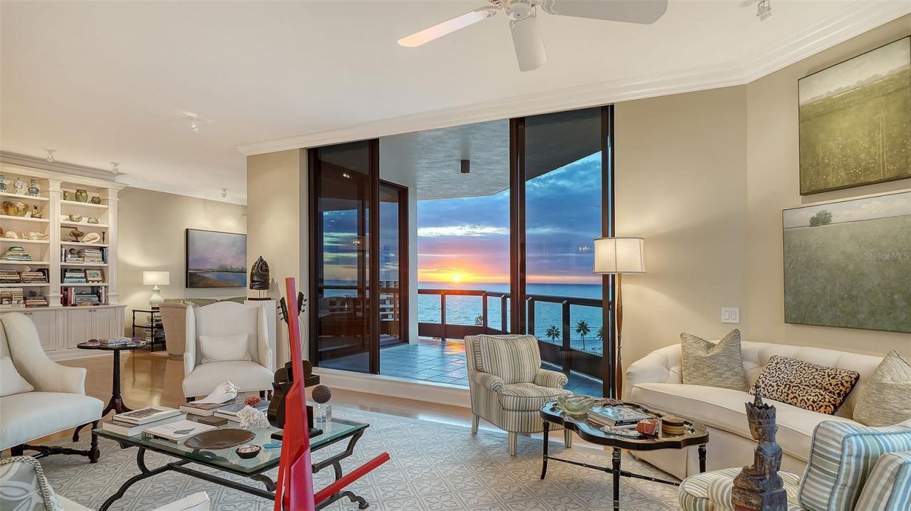 Welcome to an extraordinary corner residence at The Water Club where timeless elegance meets effortless coastal living on Longboat Key. Offering 3,275 square feet of beautifully designed interior space, this 3-bedroom, 4.5-bath condominium captures sweeping unobstructed expansive views of the Gulf of Mexico, glowing sunsets, Sarasota Bay, and the city skyline from nearly every room. Floor-to-ceiling windows and expansive sightlines fill the home with natural light, creating a serene and sophisticated atmosphere throughout. Designed with refined craftsmanship, the residence showcases custom woodworking, hardwood floors, and soaring 10-foot ceilings that enhance the sense of scale and luxury. The thoughtfully designed layout provides generous living and entertaining spaces while maintaining privacy for guests. The home is in true move-in condition and has been thoughtfully updated with all-new appliances in 2025, blending modern convenience with classic finishes. Enjoy the exclusivity of private elevator access directly to the residence, along with full concierge services that elevate everyday living. The building offers an impressive collection of resort-style amenities, including a Gulf-front swimming pool overlooking pristine white sand beaches, a fully equipped fitness studio, an elegant library, a grand ballroom for entertaining, and a game room for relaxation and recreation, a premier parking space, and as well as climate controlled storage units. This exceptional property delivers the best of beachfront living with luxury, privacy, and breathtaking views all within one of Longboat Key's most desirable addresses. A rare opportunity to own a refined coastal retreat where every detail has been carefully considered and every day feels like a getaway.