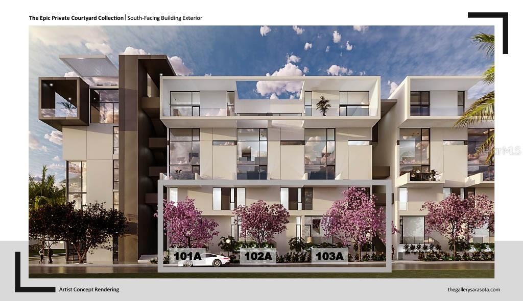 Under Construction. A flawless fusion of art and world-class architecture, The Gallery Sarasota is a boutique style condominium centrally located downtown 3-blocks from the bay, above floodplain with unparalleled proximity to restaurants, shopping, cultural venues, and the new 53-acre waterfront park. The iconic European design offers five distinct collections of light-filled residences that boast high-end Italian finishes, up to 26-foot ceilings, and full-height windows. The tranquil oasis of the private rooftop pool terrace and social lounge provides an elevated retreat for socializing, unwinding, and basking in sun drenched splendor while the vast two-room state-of-the-art fitness center and yoga studio provides an all-encompassing environment for a healthy lifestyle. Under Construction with LIMITED AVAILABILITY, The Gallery Sarasota offers a unique collection of residences you won't find anywhere else. Private Courtyards, Penthouses, Open Staircases, and more! The best way to discover this exceptional property is to schedule a private site & showroom tour. Our Sales Gallery is conveniently located downtown at 625 S Orange Sarasota, FL 34236 (complete with models & finishing selections).