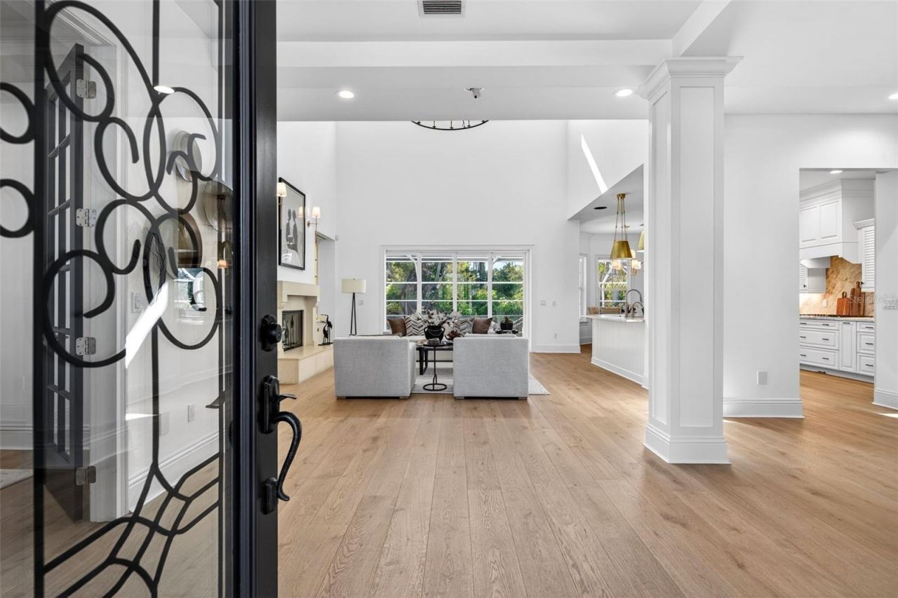 Located in Harbor Acres, one of Sarasota's most coveted neighborhoods, this coastal traditional residence enjoys an exceptional in-town setting just minutes from downtown and Southside Village, home to 14+ restaurants, Morton's Gourmet Market, and Sarasota Memorial Hospital-truly the epicenter of city living. Poised on an elevated lot, this newly renovated 4-bedroom, 4-bath home offers a highly desirable and functional floor plan filled with natural light, high ceilings, and abundant windows throughout the main level. The thoughtfully designed first floor features a spacious primary suite with dual closets and a bath with soaking tub, along with an additional bedroom suite and a private office conveniently located near the living room and primary bedroom. The living room is anchored by a fireplace flanked with custom built-in bookcases and opens via sliding glass doors to the covered patio, creating seamless indoor-outdoor flow. A well-proportioned dining room sits just off the kitchen, ideal for both everyday living and entertaining. The open kitchen features new luxury appliances, quartzite countertops, a farmhouse-style sink, beverage refrigerator, custom pantry, breakfast bar overlooking the living room, and a sun-filled breakfast room. An oversized laundry room offers ample space for custom built-ins and includes a new washer and dryer. A full bath on the main level serves both the additional downstairs suite and functions as a pool bath. Recent updates include wide-plank oak flooring, quartzite kitchen countertops, new appliances, new light fixtures throughout, two new air conditioning systems, fresh interior and exterior paint, new vanities in the primary bath and one upstairs suite, and new tropical landscaping that creates a lush garden setting. Upstairs, a large family or game room is flanked by two bedroom suites and opens to a front terrace. Designed for indoor-outdoor living, the home features a screened pool, outdoor dining area, and summer kitchen. A 4-car garage with additional storage completes this exceptional offering. Harbor Acres is renowned for its voluntary homeowners association and strong sense of community, making it one of Sarasota's most desirable neighborhoods.