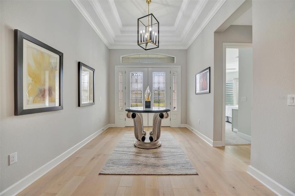 Florida luxury living at its finest! This stunning 3 bed/3 bath home is located on a conservation lot with a fenced back yard in the desirable community of Esplanade at Azario Lake offering a blend of comfort, style and luxury. This beautiful Palazzio model is situated in a tranquil neighborhood with easy access to the area's vibrant amenities, making it ideal for seeking both convenience and serene living. This well-maintained gated community boasts a spacious, open-concept layout that is perfect for both family living and entertainment. As you enter the home, you are welcomed into a bright and airy foyer with soaring ceiling, large hurricane impact sliders and an abundance of natural light. The modern kitchen is a chef's dream with top-of-the-line appliances, an extensive quartz island, gas cook top, walk-in pantry, and an abundance of storage making it ideal for meal preparation and entertainment. The home includes a luxurious master suite with a huge walk-in closet and en-suite bathroom with an amazing shower. All rooms are designed with high-end finishes, offering both functionality and style. The den offers additional space with flexible options such as an office or creative space for hobbies. The home also includes a high-end water treatment system and all lighting was upgraded after closing. The home's extended lanai provides a perfect space for relaxation and entertainment. The lanai is plumbed for an outdoor kitchen and wired for TV making it ideal for outdoor activities and enjoying Florida's beautiful weather. The backyard is perfect for adding a pool. Living in Esplanade at Azario Lake offers residents access to world-class amenities such as golf, pickleball, tennis, Bahama bar, resort style pool, and a culinary arts building offering on-site world class dining. This home is not just a place to live, but an exceptional lifestyle to experience.