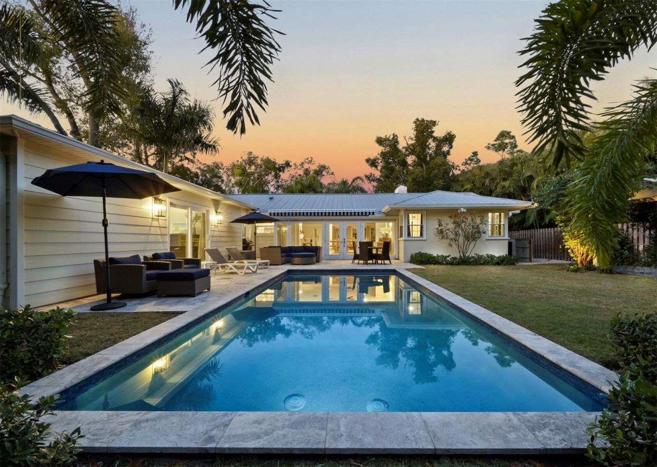 Located in the highly sought-after Avondale neighborhood, this beautiful home has been extensively and tastefully updated while maintaining its timeless charm. The split floor plan includes three oversized ensuite bedrooms, an additional powder room, and a separate study/den conveniently positioned adjacent to the primary suite. Floor-to-ceiling windows and an open floor plan allow for abundant natural light and views of the heated saltwater pool, travertine deck, and generously sized backyard. Significant renovations in 2022 and 2023 include a new primary suite addition, an extensive kitchen remodel with updated electrical and plumbing, and new flooring throughout. Exterior improvements are equally impressive, featuring impact-rated doors and windows throughout, enhanced landscaping with drainage systems, irrigation, front yard fencing, and updated lighting. Additional features include a 2-car garage with epoxy flooring, metal roof (2007/2021), and newer A/C (2021). Perfectly situated between Southside Village and the vibrant Downtown Sarasota Bayfront, the property is also located within the highly sought-after Southside Elementary School District, making it a premier choice for those seeking convenience, style, and location.