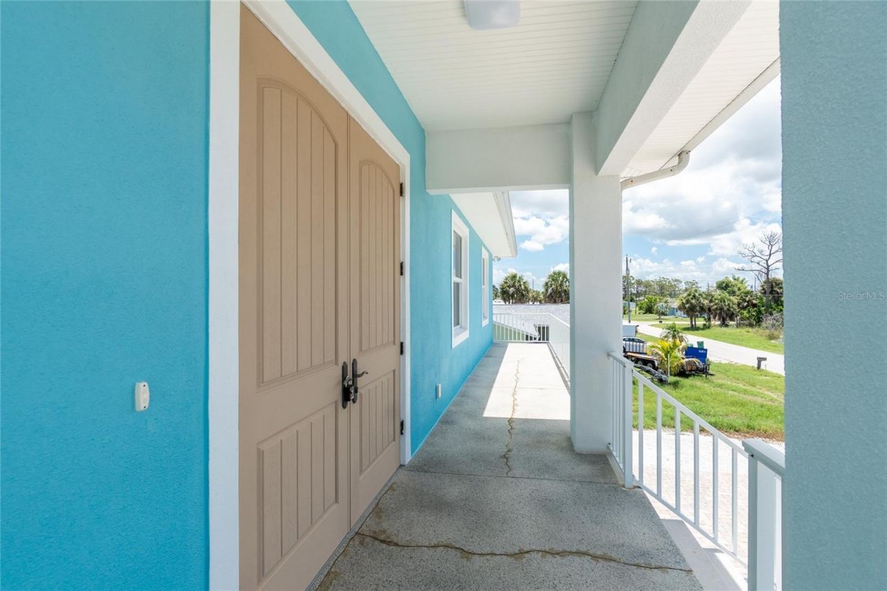 One or more photo(s) has been virtually staged. This WATERFRONT - NO BRIDGES TO BAY - HOME IS BUILT LIKE A FORTRESS! Concrete block stucco construction all the way up, with poured slab concrete flooring, and a METAL roof! Impact doors and windows! Finished floor elevation is over 18 feet, so flood insurance will be very affordable. Don't worry about all the steps as there is an elevator. With 100' ft of seawall and a covered 7000# boat lift, you can walk right out of your home, jump in the boat, and be in Lemon Bay in minutes, with fast access to Stump Pass and the Gulf of America! Very open great room design floor plan allows furniture placement in all kinds of different configurations! The kitchen features maple cabinetry, and solid surface countertops, and pantry for extra storage. Stainless appliance package includes: smooth top stove, dishwasher, built in microwave, and French door refrigerator. (all Kenmore) Laundry room is handily located just off the kitchen, and includes Kenmore front load washer and dryer. The primary bedroom has a walk in closet, ceiling fan, and ensuite bath, with double vanities w/solid surface countertops and a step in shower with easy clean solid surface walls. Guest bedrooms both have ceiling fans and walk in closets, and share a Jack and Jill bathroom, which features a combo tub/shower w/solid surface walls, linen closet, and vanity w/double basins. Each bedroom has it's OWN AC CONTROL PANEL AND ZONE! Half bath is conveniently located just off the Great room. The existing stained concrete flooring provides an opportunity to install whatever kind of flooring you like. Home is equipped with both central vacuum and a security system. Water heater was new in 2024, and AC system in 2020. Huge garage has all the storage you may need, with two automatic garage door openers. Catch some rays in your Pretty Pebbletec pool with paver decking. There's a 1300 gallon cistern that is filled from rainwater, providing an easy and inexpensive way to fill the pool or water your plants! Huge covered area downstairs would be just perfect for an outside kitchen. This home sustained NO HURRICANE DAMAGE AT ALL FROM HURRICANE IAN, and only about 27 of water in the garage from Milton. (concrete block walls made for easy cleaning!) Call today for your private appointment to see this home!