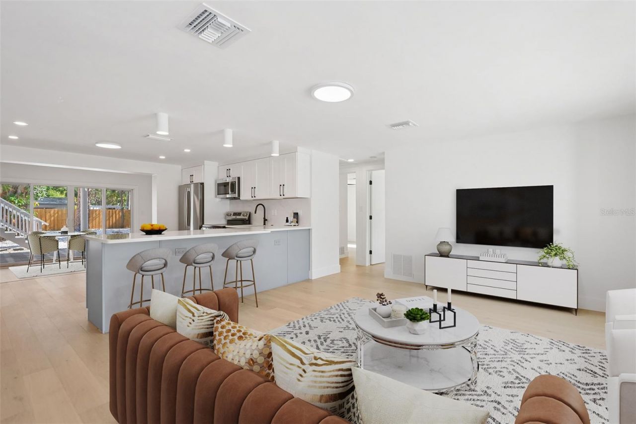 One or more photo(s) has been virtually staged. Step into this fully renovated, professionally designed 6-bedroom, 5-bathroom residence-complete with a separate legal 1-bedroom, 1-bath attached apartment (ADU) offering exceptional income or multigenerational living potential. Perfectly positioned just east of Downtown Sarasota and adjacent to the Legacy Trail, this property blends luxury, functionality, and location. From the moment you enter, you're greeted by abundant natural light, thoughtfully placed windows, and serene views of lush, mature landscaping. The open-concept layout flows effortlessly, with the main residence featuring two bedrooms downstairs and four en-suite bedrooms upstairs-including a luxurious primary suite with multiple closets and a spa-inspired bath. A generously sized guest bedroom and a spacious family room open to a full-width second-story deck, creating a seamless indoor-outdoor retreat ideal for entertaining or relaxing. The chef's kitchen is the heart of the home, outfitted with GE appliances, classic shaker cabinetry, and stunning custom Calacatta Statuario waterfall quartz countertops. No detail was overlooked in the full-gut renovation, which also includes: Fiandre Italian porcelain tile and Delta fixtures in all baths, 7-inch wide plank white oak flooring throughout, Smart thermostats and doorbell system, Brand-new roof, impact-rated windows, plumbing, water service, sewer, and electrical. Main house and the apartment have separate utilities. The oversized backyard presents endless possibilities-whether you envision a resort-style pool, outdoor lounge area, or garden retreat. The covered lanai is ready for a future outdoor kitchen, further extending your living space from the kitchen and family room. A circular driveway offers ample parking for multiple vehicles, making this home ideal for families, guests, or short-term rentals. Located just minutes from downtown Sarasota and a short drive to Siesta Key Beach, this is the turnkey, design-forward home you've been waiting for-offering the rare blend of lifestyle, luxury, and long-term value. Virtual Tour: https://my.matterport.com/show/?m=CF1BV51F1HH&mls=1