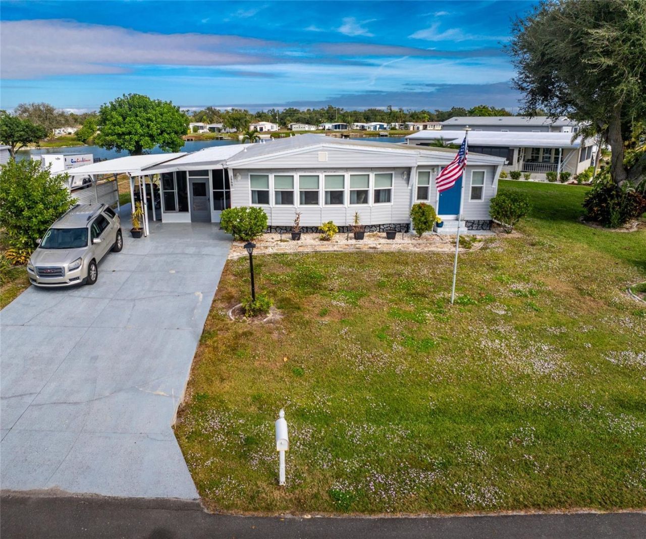 THE BEST PRICE AROUND FOR THIS BEAUTIFULLY MAINTAINED HOME ON WATER! This is move in ready with no Hurricane damage.How about buying a Triplewide Home on LAKE Sunapee here in Desirable Holiday Mobile Estate 3rd Addition!! Live where you vacation in this welcoming atmosphere.Perfect for entertaining with all this square footage right here.This home has so much to offer. It has a generous size Living Room as well as a Large family room. The Covered Lanai is in the back of house. When you enter the home you will see a lovely Florida room and then you have an attached double size back to back shed for extra storage. The windows were replaced at sometime. With all these windows it is so bright and has window treatments.The kitchen was updated with amble cabinets and counter tops. Just look at the photos to see. Breakfast Bar.You will pass the dining room on the way to the 2 bedrooms and 2 updated bathrooms.New roof over home. Double driveway and double carport. Perhaps one side for your vehicle and the other side for your Boat.The flooring was replaced. The Air conditioner was replaced in 2019 along with the Duct Work.Located on a corner lot with lush landscaping.Membership To The Edgewater Club transfers with sale. Then the yearly Membership for $300. a year is not mandatory. There is an Active Clubhouse that offers entertainment, dinner dances, themed party's, cards and more. The Entertainment commitee is wonderful.You also have a swimming pool, tennis courts, shuffleboard and other outdoor activities!Joing the yearly $35. HOA is also optional.You own your land, so no lot rent. Golf carts and pet friendly. Renting here is easy in this adult community.Welcome to Coastal living in The Sunshine State with beaches 3.5 miles away. The Lakeview you have is so relaxing and the sunsets are beautiful.Englewood still has that small town charm. Public golf courses and Public boat ramps near by.You must see this home to fully get an idea of how wonderful and roomy it is.It is being Sold-As-Is, subject to buyer's approval.All Information presented here is to the best of our knowledge, but Buyer/Buyer's agent should verify.Motivated Seller!!!IF YOU VIEWED OTHER HOMES IN THE COMMUNITY, YOU WILL SEE THIS TRIPLE WIDE UPDATED HOME ON THE LAKE SHOWS LIKE NEWAND IS THE BEST PRICED ONE AROUND FOR ALL YOU GET*********************