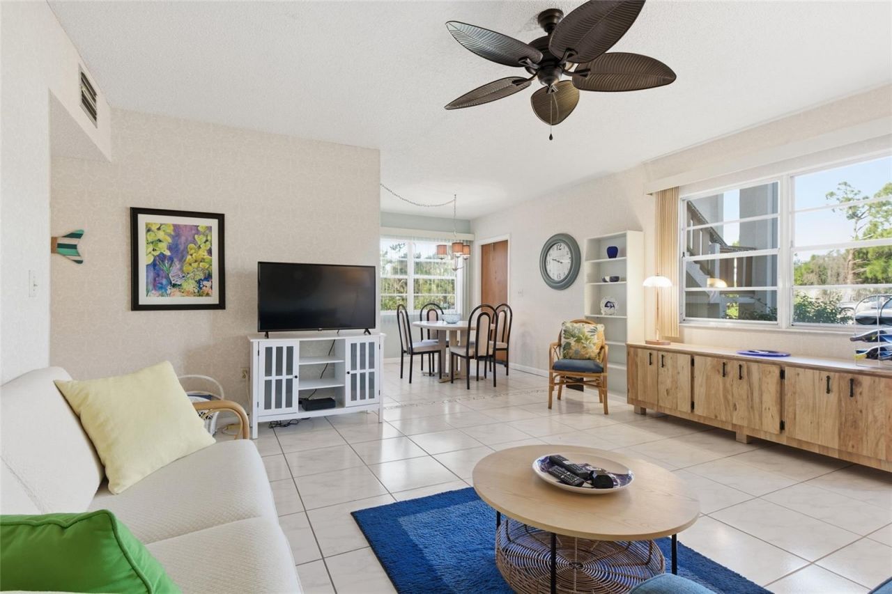 Welcome to this light and bright 2-bedroom, 2-bath first-floor corner unit in the desirable 55+ community of Quails Run. This turnkey furnished condo offers easy Florida living with tile flooring throughout and a peaceful park-like setting just steps from community amenities. The building features a new roof in 2025, providing added peace of mind. Centrally located near everything Englewood has to offer-Historic Dearborn Street is less than one mile away, featuring a weekly farmers market, dining, shopping, and entertainment. Beautiful Gulf beaches are under 3 miles away. Residents enjoy a community pool, shuffleboard courts, clubhouse, and convenient laundry facilities. Perfect as a seasonal retreat or full-time residence-just bring your suitcase and start enjoying the Florida lifestyle!