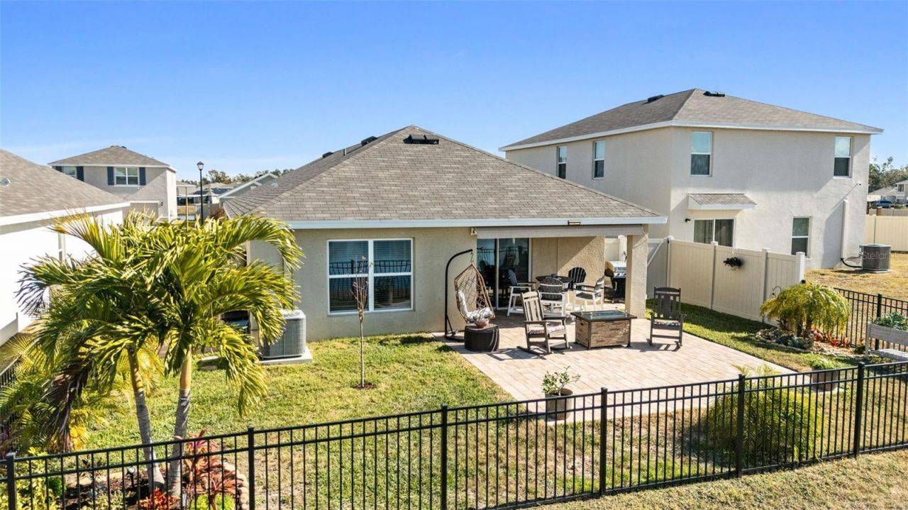 QUALIFIED BUYERS MAY BE ELIGIBLE TO RECEIVE A 4.99% INTEREST RATE FOR THE FIRST YEAR AT NO ADDITIONAL COST BY USING PREFERRED LENDER! Welcome to this beautifully landscaped and upgraded home in the Evergreen community of Bradenton, where outdoor living and peaceful water views take center stage. From the fully fenced backyard to the tranquil pond setting, this home is designed to enjoy Florida's relaxed lifestyle both inside and out. Inside, you'll find a well-appointed split floor plan with a spacious living room that flows seamlessly into the kitchen and dining areas. The kitchen features granite countertops, stainless steel appliances, added cabinetry, and opens directly to a formal dining area, creating an ideal setup for both everyday living and entertaining. Additional interior upgrades include stylish paint, tasteful shiplap accents, all-new ceiling fans throughout, a whole house TV antenna for local channels, and a whole-house water purification system. The home is smart-home equipped and includes security lights and cameras. The primary suite offers an en-suite bathroom and a walk-in closet, while two additional bedrooms share a well-designed bathroom, providing comfort and flexibility for family or guests. Stepping back outside, the beautifully landscaped and fully fenced backyard is the true highlight of the property. Designed for entertaining and everyday enjoyment, it features two separate paver patios, pond-fed irrigation, and serene pond, wildlife, and sunset views. Additional upgrades include a SunSetter electric awning, outdoor TV and speakers, and extra paver areas ideal for grilling or added storage. The home also features a 2-car garage with epoxy flooring. Evergreen offers a low HOA community with a pool and community center, and is ideally situated to a variety of public and charter schools, nearby restaurants, golf courses, and is just a short drive to Florida's beautiful Gulf Coast beaches.