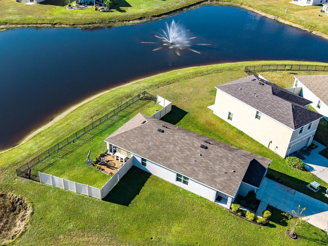One or more photo(s) has been virtually staged. This inviting waterfront home features nearly a quarter of an acre, a fully fenced backyard, and a stunning fountain view. Why wait to build when you can enjoy a perfect blend of comfort and serenity now in this beautifully designed three-bedroom, two-bathroom residence by DR Horton? The covered front porch entry warmly welcomes your guests into the foyer and main living area beyond. This home has been meticulously upgraded within the last year, showcasing stylish handcrafted moldings throughout. All rooms and the lanai now have elegant ceramic tile flooring, creating a cohesive ambiance. A covered back porch has also been screened in, and a composite sundeck has been added in the backyard. A separate dining area is located next to the open-concept kitchen, which has a newly tiled backsplash that beautifully complements the granite countertops and breakfast bar. The functional design includes white shaker-style cabinetry and a fully equipped stainless steel appliance package. Additionally, there is a pantry closet nearby for extra storage options. The living room boasts sliding glass doors that frame a breathtaking view of the tranquil waters beyond. The primary suite also offers views and features, a large walk-in closet, and a private bathroom, complete with double sinks and a spacious shower enclosed by a glass door. Completing the interior living space are two additional bedrooms, a guest bathroom, and a laundry room. A combination of durable concrete-block construction, 2-car garaged parking, beautiful landscaping, and a cul-de-sac setting creates inviting curb appeal. Don't miss this incredible opportunity to claim your own piece of paradise in the serene Evergreen community! With a modest association fee, you'll enjoy wonderful amenities, including a cozy community space with mailboxes, bike racks, a relaxing outdoor lounge with bar seating, and a large swimming pool just waiting for you! This vibrant location is nestled near River Run Golf Links and Riviera Dunes Marina. Its proximity to local attractions, shopping centers, and Manatee Memorial Hospital, along with easy access to I-75 and airports, makes it a fantastic gateway to the vibrant cities of Tampa, St. Pete, and Sarasota, and it offers a variety of shopping and dining choices.