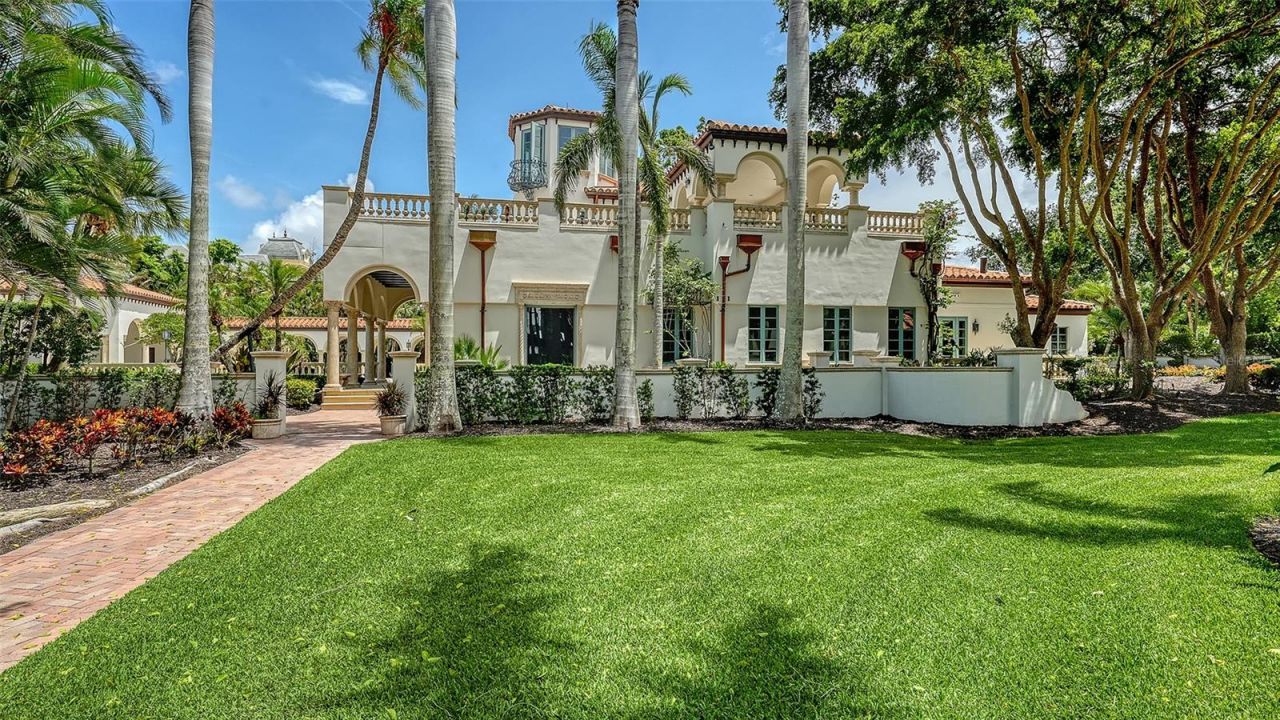 One of the most exceptional Bayfront Estates on Florida's west coast, offering sweeping Sarasota Bay views and unforgettable sunsets over Longboat Key. This gated waterfront retreat features a private beach, lush tropical landscaping, and a stunning courtyard with pool perfect for both entertaining and quiet enjoyment.Plans by a renowned architect Landry design group are available to reimagine the estate, which already boasts custom interiors, soaring thirty foot ceilings, intricate imported ironwork, and fine wood craftsmanship. The gracious entertaining spaces open to a lavish terrace with a fifty-foot lap pool, two outdoor kitchens, an elegant bathhouse, koi pond, and a private spa.This rare waterfront sanctuary combines total seclusion with unbeatable convenience - minutes from Sarasota Airport, downtown, the Ringling Museum, Longboat Key Club, and pristine beaches. A one-of-a-kind opportunity you don't want to miss.