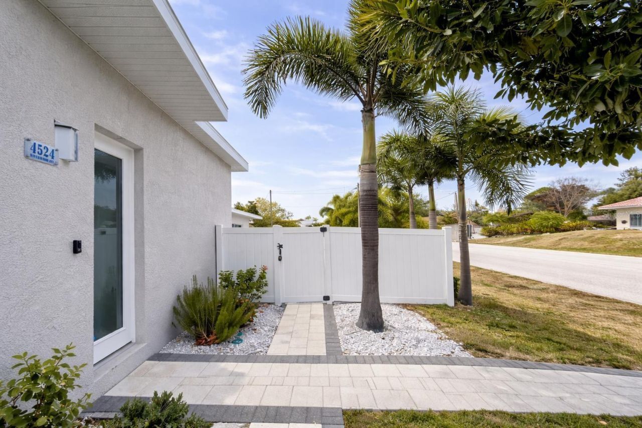 Experience elevated Florida living in this fully remodeled 3-bedroom, 2-bath concrete block residence with a private office that easily functions as a 4th bedroom.Built in 2016 with a tile roof and upgraded A/C (2020), the home features soaring 10+ foot ceilings, impact windows, tall contemporary doors, and a bright open-concept layout designed for both comfort and modern sophistication.Positioned on a prominent corner lot and not located in a flood zone, the property offers architectural presence, added privacy, and long-term peace of mind - all with no HOA and no CDD fees, providing true flexibility and freedom of ownership.The heart of the home is a striking designer kitchen appointed with luxury appliances, sleek custom cabinetry, an oversized island, and elegant pendant lighting. Recessed lighting and abundant natural light enhance the dramatic ceiling height and create seamless flow into the expansive living and dining areas.What truly sets this residence apart is its seamless indoor-outdoor design.Expansive sliding glass doors open to a sleek, elongated lap-style pool surrounded by an oversized paver deck. Every bedroom enjoys its own direct access to the pool area - a rare and intentional architectural feature that elevates both privacy and resort-style living. Whether hosting guests or enjoying a quiet morning swim, the layout creates a level of functionality and lifestyle appeal seldom found in this price range.The fully fenced backyard is framed by mature palm trees, creating a private tropical setting that captures the essence of Florida living while maintaining a refined, modern aesthetic.Additional highlights include beautifully updated bathrooms with contemporary finishes, a spacious laundry room with custom cabinetry, and a two-car garage.Located approximately 4 miles from Siesta Key Beach with convenient access to dining, shopping, and everyday essentials, this property offers modern design, thoughtful architecture, and authentic Florida lifestyle living.Vacant and move-in ready.
