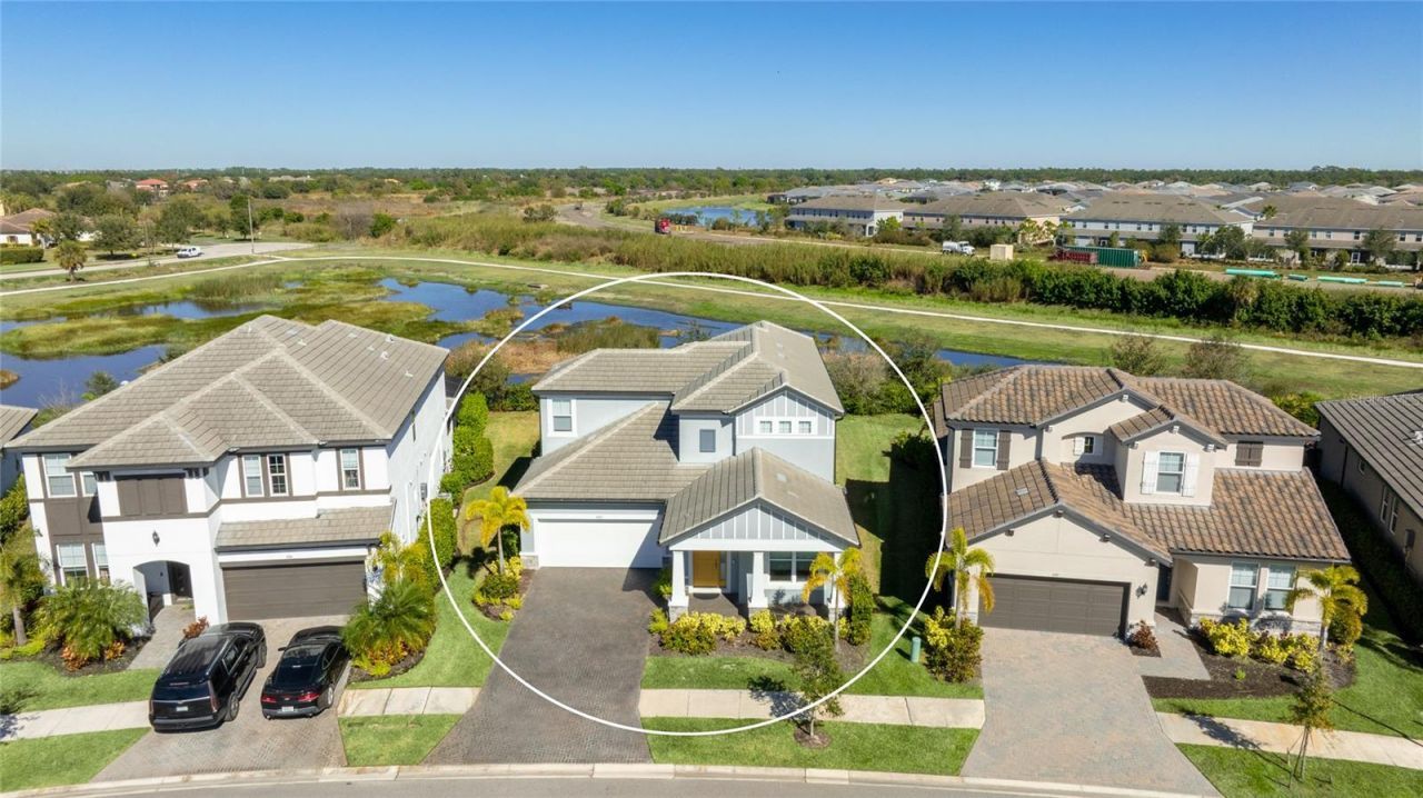 Located in the desirable Worthington community in East Sarasota, this spacious 4-bedroom, 4.5-bath pool home offers a well-designed layout, quality finishes, and comfortable indoor-outdoor living. The home welcomes you with coastal-inspired curb appeal and a covered front porch that sets a polished first impression. Inside, the open-concept main living area features wood-look tile flooring, high ceilings, and abundant natural light. The kitchen is thoughtfully designed with white cabinetry, quartz countertops, a large center island with seating, stainless steel appliances, a gas cooktop, and a generous walk-in pantry. The kitchen flows seamlessly into the dining and living areas, making it ideal for both everyday living and entertaining. Sliding glass doors lead to a screened-in saltwater pool with a covered outdoor living area and a full pool bath, providing convenience for guests and enhancing outdoor enjoyment. The backyard offers a peaceful preserve setting that adds to the sense of privacy and relaxation. The primary suite is located on the main level and features a spacious layout with tray ceiling and an en-suite bath offering dual vanities, a large walk-in shower, and clean, modern finishes. There is also a spacious walk-in closet with added shelving. Additional bedrooms are well sized and paired with full baths, allowing flexibility for guests, or home offices. Upstairs, a versatile loft serves as a second living area and opens to a private balcony overlooking the pool, making it a great space for a media or game room. Additional features include a full water softener and filtration system, Hunter Douglas window treatments, upgraded light fixtures, a gas pool heater, gas dryer, storm shutters, and an epoxy-finished garage with added storage. Conveniently located in East Sarasota, the home is close to shopping, dining, top-rated schools, and major roadways, while also offering easy access to outdoor destinations such as The Celery Fields, nature preserves, walking and biking trails, and nearby parks, creating a well-rounded blend of everyday convenience and active lifestyle options. **THIS PROPERTY QUALIFIES FOR A 1% LENDER INCENTIVE IF USING PREFERRED LENDER. INQUIRE FOR MORE DETAILS.**