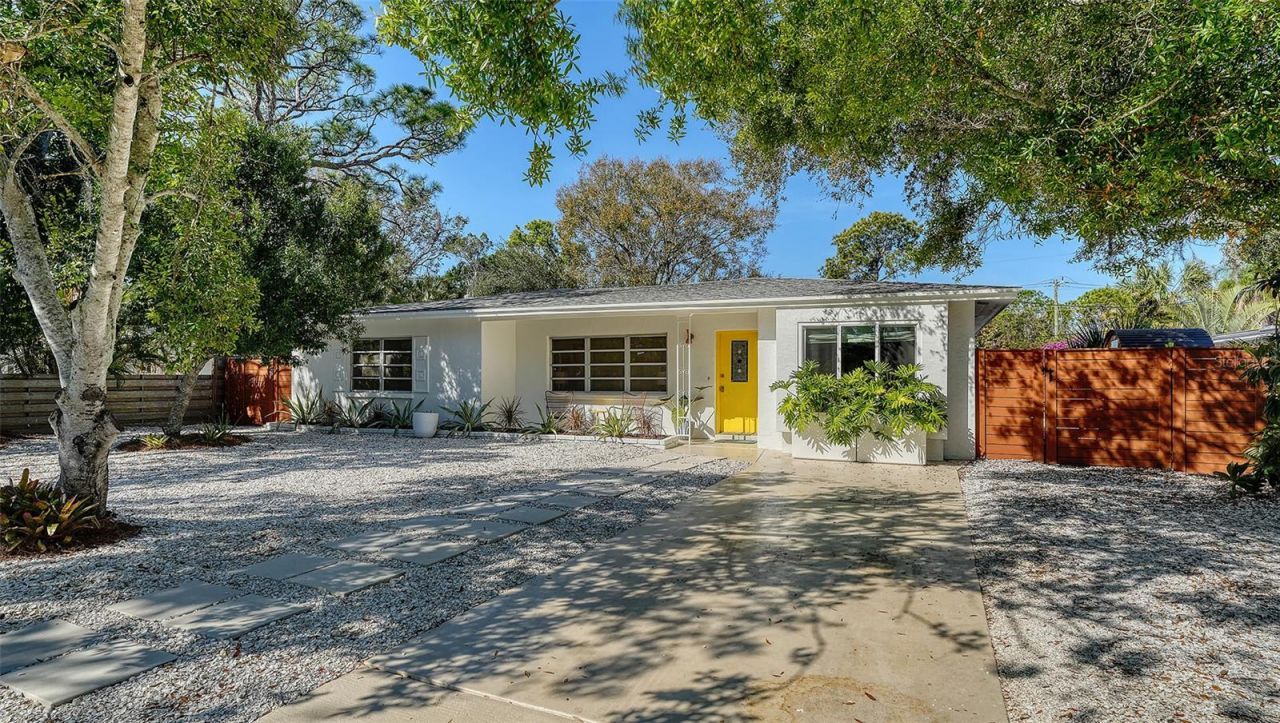 Fully renovated mid-century gem in the charming and highly coveted Indian Beach Sapphire Shores neighborhood of Sarasota. This exceptional three-bedroom, two-bathroom home has been lovingly preserved and thoughtfully restored with a strong emphasis on period-appropriate mid-century design and timeless style.Original terrazzo floors sparkle throughout the main living areas, honoring the home's architectural roots. The fully renovated kitchen features new high-end appliances and blends seamlessly with the home's classic aesthetic. The former Florida room has been transformed into comfortable year-round living space with permanent climate control, with the design anchored by an authentic vintage 1960s Preway wood-burning cone fireplace - a true statement piece. High-end mid-century light fixtures are showcased throughout, including multiple authentic Herman Miller pieces.Major updates provide peace of mind, including a new roof (2023), brand-new HVAC system and ductwork (2024), and a new solid wood privacy fence (2024). All bedrooms offer sizable closets, and the large zero-scaped front yard ensures beauty with minimal maintenance.The expansive backyard is a private retreat, featuring a generous paver patio and ample space for a pool or future additions. A newly installed barrel sauna and cold plunge create a spa-like sanctuary along the side yard, with convenient access from the principal suite.The true highlight of the home is the architect-designed principal bedroom and bathroom suite, completed in 2025 - an incredibly rare feature for this neighborhood and era. Designed as a private oasis, the light-filled bedroom includes a picture window and charming window seat, thoughtfully separated from the two guest bedrooms on the opposite wing of the home. The spacious en-suite bathroom is professionally interior designed and features high-end fixtures, a large walk-in shower, a freestanding spa tub, double vanity, and a walk-in closet. An exterior door provides direct access to the outdoor spa area for seamless indoor-outdoor living.Ideally located, this home is within a short distance to multiple beautiful waterfront parks and the renowned The John and Mable Ringling Museum of Art. Just five minutes to downtown Sarasota and ten minutes to the pristine beaches of Lido Key, you'll enjoy the very best of Sarasota's natural beauty and vibrant cultural scene - all from the comfort of your exquisitely restored mid-century home in one of the city's most beloved neighborhoods.