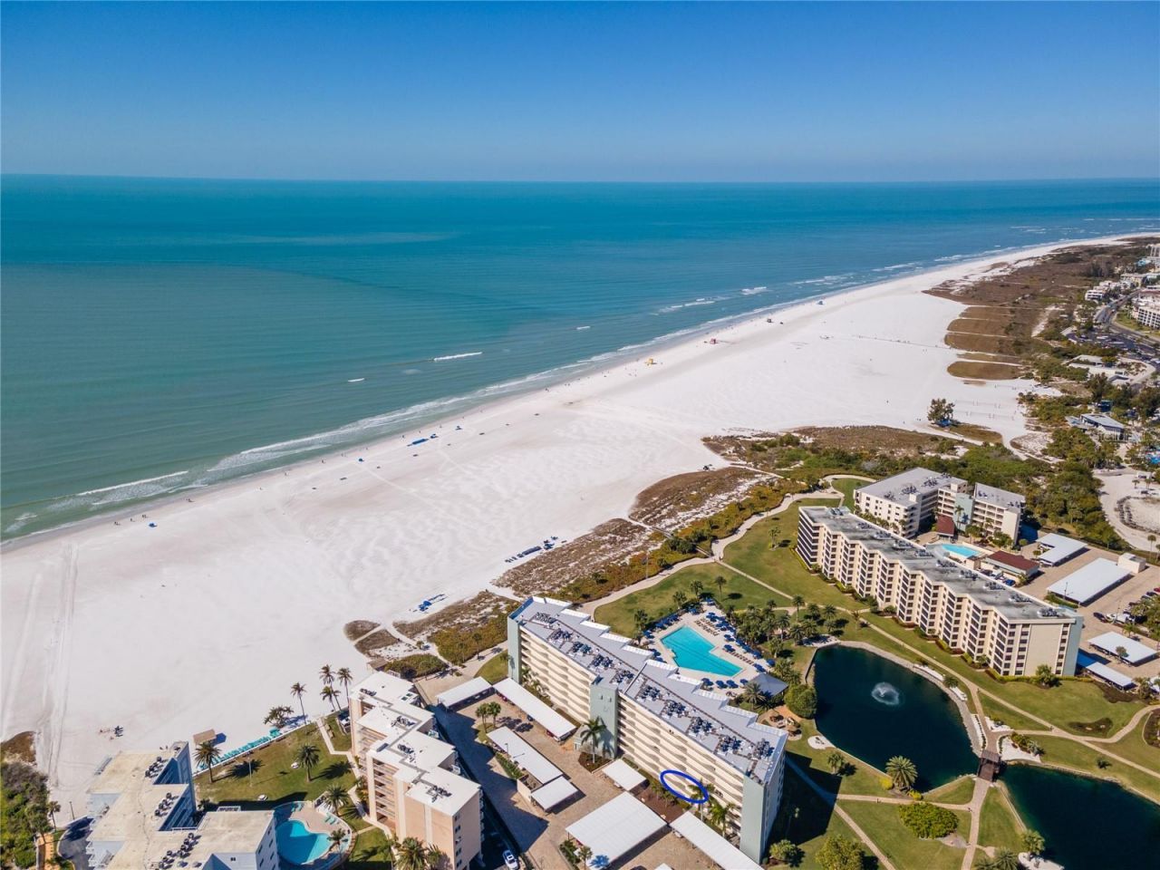 Experience, luxury gulf front living at its best in this beautiful move in ready beachfront condo on world famous Siesta Key Beach in Sunny Sarasota, Florida. Perfectly located to enjoy breathtaking views of the Gulf Waters, powdery white quartz sand and beautiful evening sunsets. This turnkey, tastefully furnished residence is the ultimate coastal paradise either as a primary residence, vacation retreat or investment/rental property. The open concept floor plan features two spacious bedrooms as well as two full bathrooms, new carpet in the living areas as well as new Bosch refrigerator, GE range and microwave in addition to a new hot water heater. This unit is great for entertaining with its open floor plan and great room open to updated kitchen that features solid wood cabinets, granite countertops, a large island, and plenty of bar seating. Enjoy the best of beachfront living and magnificent sunsets from your dining table as well as your primary suite. this unit truly is move-in ready, just bring your suitcases. The residents of this community enjoy all of the resort style amenities, including two heated pools, state-of-the-art fitness center, clubhouse, pickleball courts, tennis courts, as well as racquetball courts in addition to an outdoor kitchen/grilling area for your beach gatherings. The community offers something for everyone in your party. Community is also located just minutes from multiple dining options, shopping, and lots of island attractions for your entertainment. This Gulf front condo delivers the perfect blend of relaxation and entertainment, live every day like you're on vacation in your beachfront condo/community and and every afternoon with a magnificent sunset. Call to schedule your showing today.