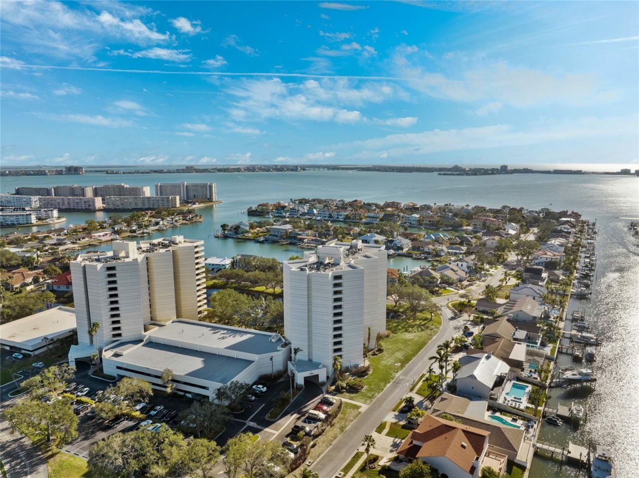 Perched on the top floor as a coveted corner residence, the Penthouse in Pelican Bay building A offers a rare opportunity to experience breathtaking, open water views stretching from vibrant downtown St. Petersburg across the shimmering expanse of Boca Ciega Bay.From the moment you enter, you're greeted by walls of floor-to-ceiling sliding glass doors that flood the home with natural light and frame panoramic vistas at every turn. The spacious split-bedroom floor plan is thoughtfully designed for both privacy and comfort, creating the ideal setting for full-time living or a luxurious coastal retreat.The immaculate and recently refreshed interior features two generously sized bedrooms, each with its own ensuite bath and walk-in closet, offering refined comfort for residents and guests alike. The kitchen is beautifully appointed with solid wood cabinetry, granite countertops, recessed lighting, and a charming casual dinette area perfectly positioned to overlook the sparkling bay - an inspiring backdrop for morning coffee or sunset dinners. Multiple balconies invite you to step outside and savor the sea breezes, glowing sunsets, and twinkling evening lights.Pelican Bay Condominiums is a resort-style waterfront community nestled within the gates of the Pasadena Yacht & Country Club. Residents enjoy a secure, beautifully maintained environment with pool and spa as well as an option to join the country club offering with lush a waterfront pool and spa, fitness center, clubhouse, and private marina. One of the most exceptional privileges of ownership here is the ability to bypass the waitlist for a highly sought-after golf membership at Pasadena Yacht & Country Club - a valuable benefit. The club itself offers championship golf, tennis, boating, fine dining, and an active social calendar in an elegant yet welcoming atmosphere.Ideally situated just minutes from Florida's award-winning Gulf beaches, a short drive to the cultural energy and dining scene of downtown St. Petersburg, and approximately 35 minutes to Tampa International Airport, this penthouse residence truly delivers the best of luxury waterfront living - privacy, prestige, and panoramic beauty - all in one extraordinary address.