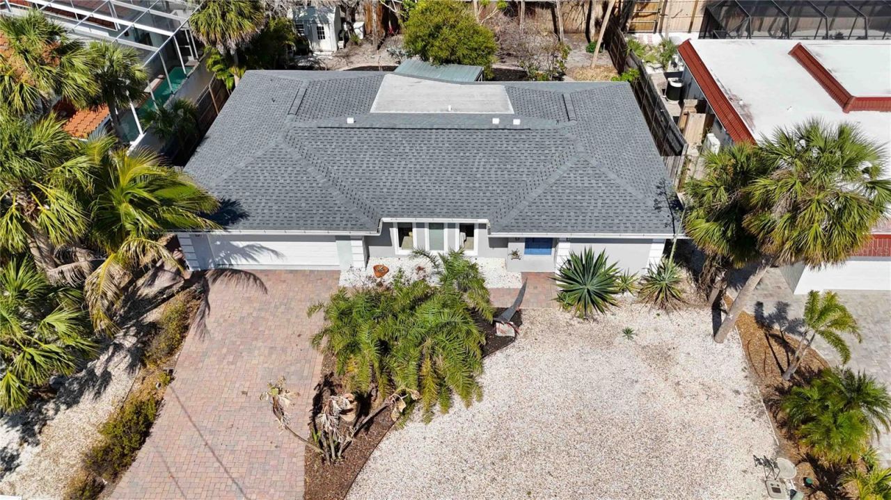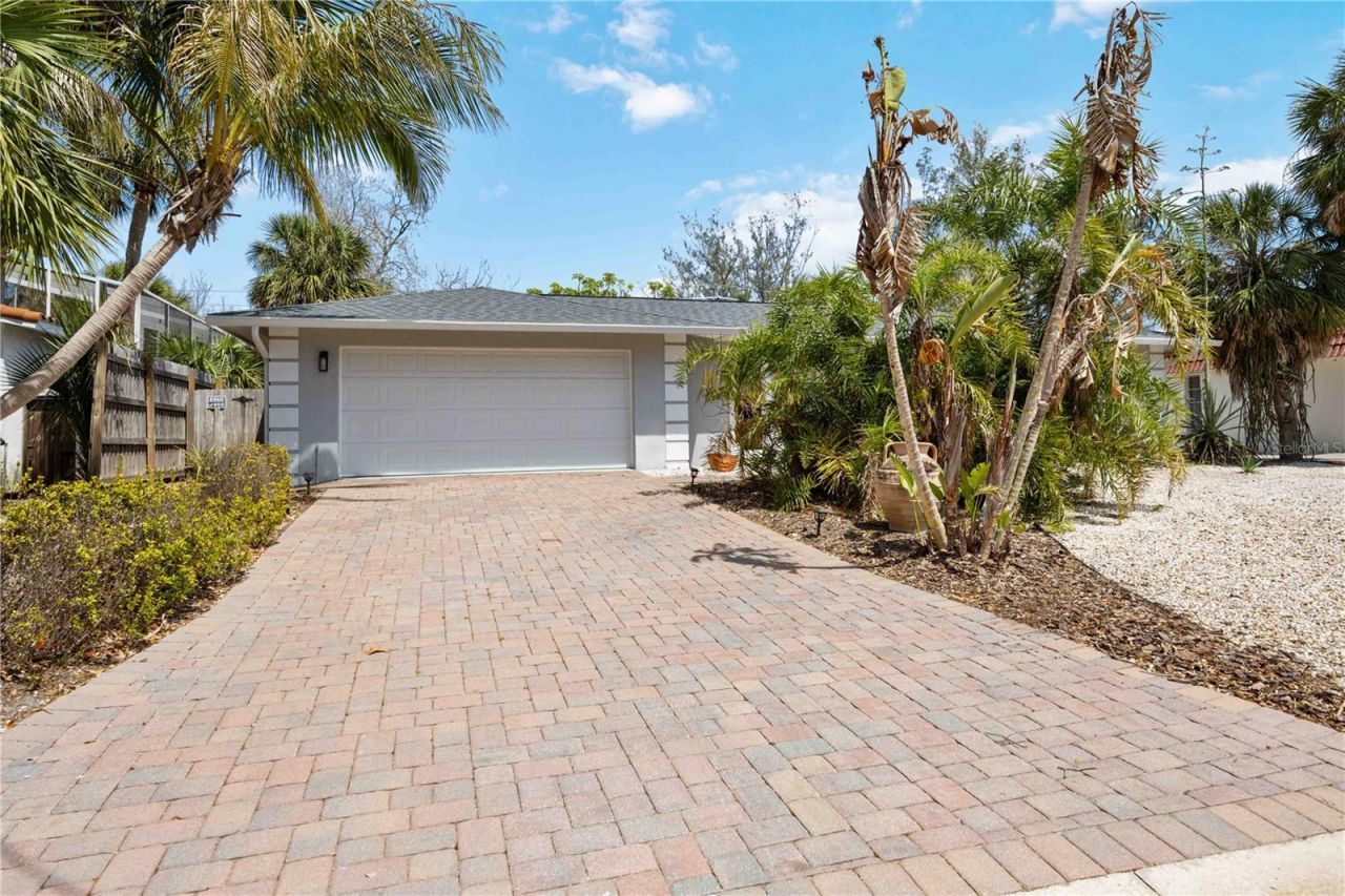 Located in the heart of Siesta Key, this three-bedroom, two-bath home with a two-car garage offers a rare opportunity to experience island living just one mile from Siesta Key Beach-consistently ranked the #1 beach in the United States for its white quartz sand, turquoise waters, and year-round appeal.This property is perched on an elevated lot that has never experienced flooding. Recent updates in 2025 include a new roof, fresh landscaping, exterior lighting, and updated exterior paint, enhancing both aesthetics and durability.Inside, the home is designed for comfort and functionality. The living room is bright and open, with large windows to bring in natural light. The kitchen offers a well-planned layout with an oversized island, wood cabinetry, stainless steel appliances, wall oven (2025), and granite countertops-creating a versatile space for cooking, dining, and entertaining. The dining room overlooks a screened-in lanai and a landscaped backyard, through three large sliding glass doors creating a seamless indoor-outdoor flow.The primary suite includes tall windows overlooking the serene backyard, a spacious walk-in closet, an en-suite bath with dual sinks, and backyard views. A split floor plan provides privacy, with two additional bedrooms connected by a Jack-and-Jill bathroom. Additional features include a spacious dedicated laundry room, a two-car garage, a reverse osmosis filtration system(2018), water heater(2023), A/C system (2019), perma-lined pipes(2020), gutters, a shed, and fenced yard.The backyard is a peaceful retreat, with a winding paver path through the garden, multiple seating areas, fountains, and an outdoor shower-an ideal space for relaxation after a day at the beach.Siesta Key offers an active and vibrant lifestyle, with several public beach accesses, nearby pickleball and tennis courts, parks, playgrounds, and sports fields. Top-rated restaurants, boutique shopping, entertainment, and luxury spas are just minutes away.This move-in-ready home is an invitation to embrace the best of Siesta Key. Schedule your private showing and receive additional information today.
