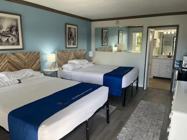 WATER-VIEW condo-hotel room located within the Ramada by Wyndham. Enjoy the view from this 2nd LEVEL residence overlooking the lush landscaping, wide canal and boat activity of this waterfront resort. This privately owned condo-hotel residence may be rented daily and short-term with no minimum lease restrictions. Rent it or use it as much as you like! This room would be the PERFECT CABANA FOR BOATERS! Dock in front of your room when available and keep your boat in the Marina that surrounds the hotel. After a full day of boating enjoy the hotel amenities; including a heated pool, newly renovated Tarpon Bay Grill & Tiki Bar, on-site breakfast room, free coffee bar, arcade, fitness center and community laundry room. Unit C-233 is furnished with two queen beds, a large dresser, mini-refrigerator, microwave, and a low-rise bistro set. The renovated bathroom features stone countertops, updated cabinetry, and modern fixtures. Located approximately two miles north of Sarasota/Bradenton International Airport and minutes from Downtown Sarasota dining, shopping, art galleries, and entertainment. Close proximity to some of the area's most popular beaches including Lido, Longboat , Siesta Key, and Coquina Beach. Monthly Condo fees include all utilities, Electric, Water, Sewer, Trash, Cable, Internet, Phone, exterior maintenance, and interior common areas.
