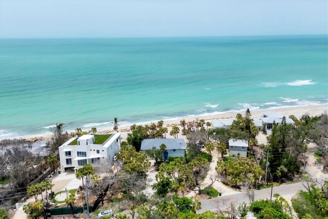 BEST priced Gulf front home! Welcome to your private beachfront escape on the quiet and unspoiled shores of Manasota Key. Tucked away on a lushly landscaped 0.64-acre lot with about 103 feet of direct Gulf frontage, this serene retreat offers relaxed, Old Florida charm. Step inside this mostly furnished coastal home and soak in sweeping views of the Gulf of Mexico-from nearly every room. Whether you're looking for a peaceful getaway or a full-time seaside sanctuary, this home blends comfort, style, and an unbeatable location right on the water. Notable highlights and recent upgrades include a private elevator for added convenience and luxury, some impact-resistant sliding glass doors & an impact-resistant garage door for enhanced safety, a newly installed riprap shoreline (2022) providing durable coastal protection, and a brand-new roof (2021) for peace of mind. With three bedrooms and two baths, the open layout feels airy and welcoming. You'll find plenty of storage with generous hallway closets, while the primary suite offers a true sense of retreat-with hardwood floors, two walk-in closets, impact-resistant sliders, and a spa-like bath featuring a soaking tub, walk-in shower, and dual vanities. Upstairs, the living and dining areas offer hardwood floors and panoramic Gulf views. Step out onto your screened lanai to enjoy ocean breezes and front-row seats to spectacular sunsets. Downstairs, there's a two-car garage, impact sliders, and a large open space-ideal for storage or finishing to suit your needs. Outside, tropical landscaping frames your private path to the beach. There's even an outdoor shower and a sun deck off the lanai-perfect for laid-back afternoons after a swim in the Gulf. If you've been dreaming of quiet walks on the beach, gentle sea breezes, and the kind of coastal lifestyle that feels worlds away-this is your chance to customize & personalize this slice of paradise to make it your own. Discover the serenity, beauty, and timeless appeal of Manasota Key.