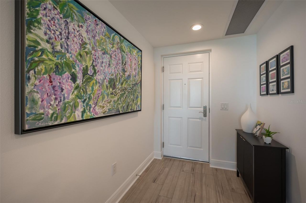 Indulge in elevated coastal luxury within this exquisitely redesigned two-bedroom, two-bath residence, ideally positioned in the heart of downtown Sarasota. Nearly every surface has been thoughtfully reimagined, resulting in a home defined by refined elegance, modern comfort and exceptional functionality. Upon entry, a luminous interior and open floor plan immediately draws the eye toward unobstructed westerly water vistas of Sarasota Bay. In the south tower on the eighth floor, this residence enjoys one of the building's desired exposures, delivering expansive views and abundant natural light throughout the day. Sunlight moves gracefully across the interiors, enhancing volume, warmth and connection to the surrounding coastal landscape. Wide-plank flooring in a soft, neutral palette flows throughout the residence, creating visual cohesion and understated sophistication. High-end CoreTec luxury vinyl plank flooring offers the look of wood with durability and comfort underfoot, while accented baseboards elevate the finished presentation. The home has been fully renovated with designer light fixtures, ceiling fans, updated plumbing fixtures, and Hunter Douglas automatic blinds in the living room. Rich quartz countertops in the kitchen and baths establish a cohesive contemporary aesthetic, while the stainless-steel appliance package, including a French-style KitchenAid refrigerator, anchors the kitchen with beauty and performance. A walk-in laundry room is complemented by an additional flexible space just off the kitchen, ideal for organized storage or a generous pantry, a rarely found feature unique to this floor plan. The primary suite offers a walk-in closet and a thoughtfully designed en-suite bath featuring a large walk-in shower, linen closet and dual anti-fog LED mirrors. Both baths showcase custom tile work, glass shower panels, and creative niches reflective of the building's architectural design. The second bedroom, equally suited as a den or office, is generously sized and features two windows with Sarasota Bay views, an attribute shared by every room in the residence. Alinari is a classic contemporary 18-story luxury high-rise offering refined plazas, fountains, a private recreational parcel and resort-style amenities. In 2025, enhancements were completed to the pool area, planters, movie theater, game room and catering kitchen. The building features key-card entry, a redesigned lobby, 24-hour on-site security and full front-desk services. In Flood Zone X and outside the floodplain, Alinari was engineered with reinforced concrete construction and deep pilings, with the lobby and guest parking elevated approximately 17 feet above base sea level. This residence includes a climate-controlled assigned storage unit and two garage parking spaces on the second and third levels, placing vehicles more than 30 feet above sea level. The association maintains strong reserves with no current or upcoming assessments. Amenities include on-site management, secured parking, a resort-style pool, hot tub, grilling area, club room, wine room, fitness center, saunas, business center, resident theater and on-site guest suites. Perfectly in Sarasota's cultural district, Alinari is moments from world-class arts, dining, waterfront promenades and vibrant social experiences, with Sarasota Bay Park project underway with a new bayfront greenspace with pier and more. Downtown Sarasota living meets convenient coastal.