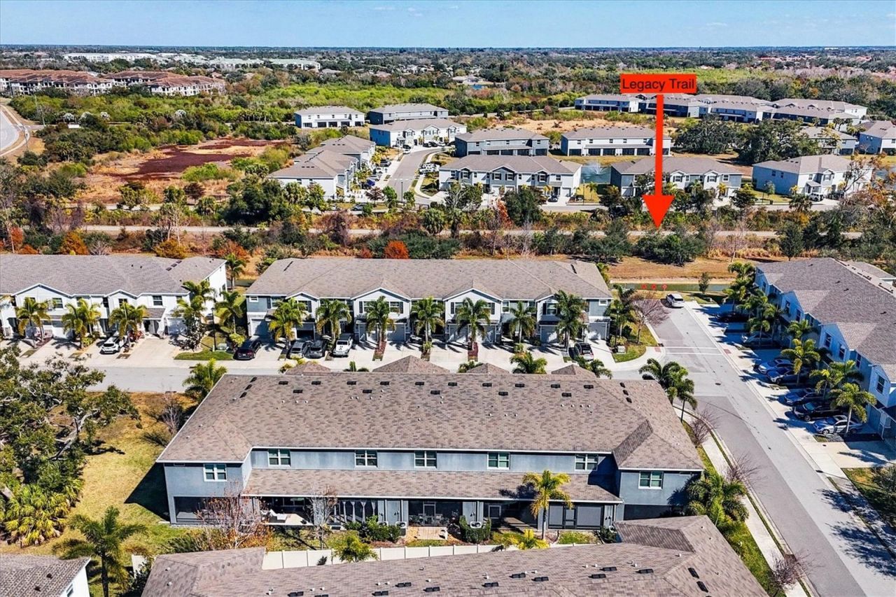Welcome to 8651 Stargazer Street a move-in ready, open-concept townhome located in a pet-friendly gated community just steps from the Legacy Trail and only minutes from Siesta Key Beach and all that Sarasota has to offer. Located in Flood Zone X (low-risk) and upgraded with Renewal by Andersen hurricane windows for added peace of mind, this home blends comfort and convenience. As you arrive, you'll appreciate the two-car driveway, one-car garage, and covered front porch entry. Inside, tile flooring spans the entire first floor, enhancing the bright and open layout. The kitchen is beautifully appointed with stainless steel appliances, granite countertops, wood cabinetry, a complimenting backsplash, pendant lighting, and a large walk-in pantry. The dining area includes a walk-in storage closet, while the spacious living room overlooks the screened lanai. This area being the perfect spot to enjoy your morning coffee or unwind in the evening. For your convenience a half bath completes the first level. Upstairs, brand-new carpet runs throughout the stairway and second floor (excluding wet areas and the primary suite). The primary bedroom features engineered hardwood flooring, two walk-in closets, and an ensuite bathroom with two sinks and a generously sized walk-in shower. The guest bathroom offers a relaxing soaking tub. All three bedrooms include ceiling fans, and the second-floor laundry closet is equipped with a side-by-side washer and dryer plus additional storage space. The one car garage provides a spot to keep your car out of the Florida sun and store your beach chairs and other Florida necessities. When it's time to enjoy the community, take a short stroll to the resort-style pool and covered cabana area. The nearby Legacy Trail offers miles of scenic paths for walking, running, biking, or connecting with friends. Just minutes away from the community are shopping, dining, and everyday conveniences. The monthly HOA fee of $350 includes exterior ground maintenance, water and sewer, community amenities, and the security of gated access. No CDD fee. Owners may lease their properties on a 7-month minimum lease, and up to three pets are permitted per residence. Recommended builder improvements to the ledger board have been completed. Don't miss this opportunity to own a move-in ready home in one of Sarasota's most desirable and convenient locations. Schedule your showing today!