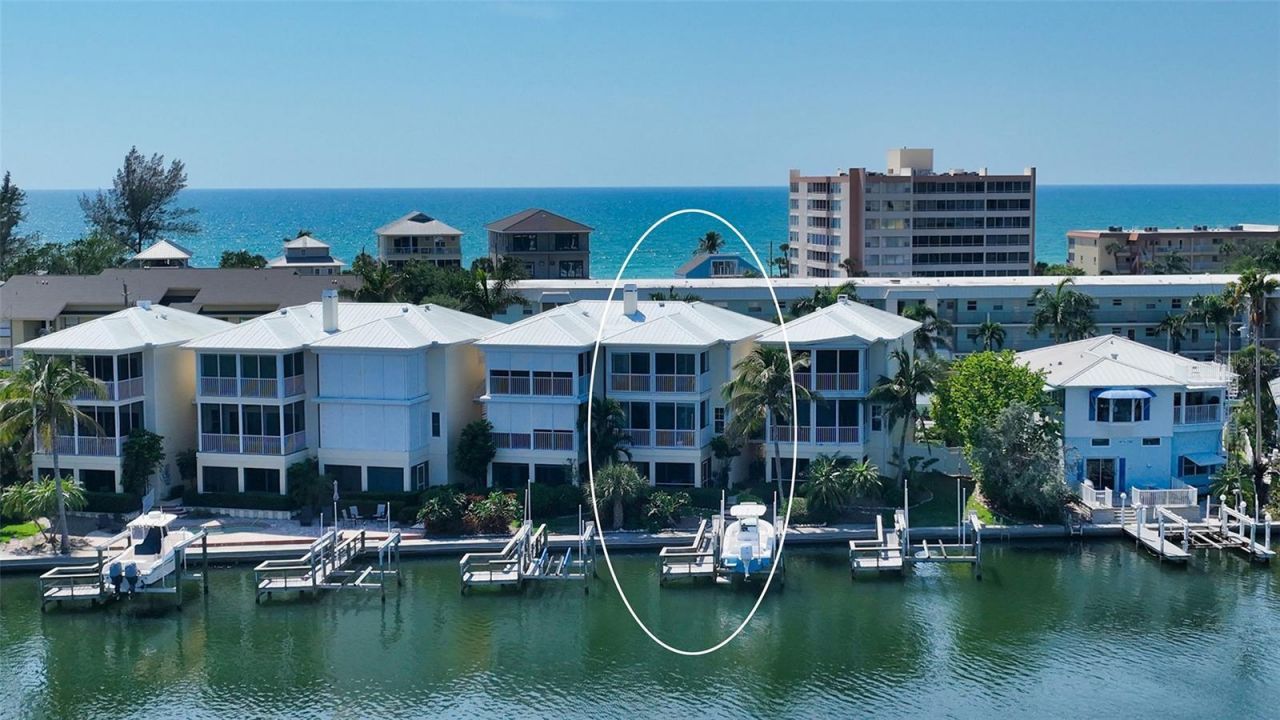 Premier Siesta Key living awaits in this exceptional waterfront townhome on the quiet south end of the island, just steps from Turtle Beach. Enjoy panoramic Intracoastal Waterway views and stunning sunrises with direct, no-bridge access to the Gulf through the newly reopened Midnight Pass. Located in Siesta Bayside South, an exclusive six-unit waterfront community, this residence offers updates including oak floors, impact sliders, motorized window treatments, and an oversized four-car garage with wall mounted pressure cleaner to wash cars, lanai, and garage floors.Three levels provide distinct water perspectives. The main living area opens to an enclosed, oversized lanai, adding to the home's overall living space and creating an ideal setting for indoor-outdoor entertaining. The private primary suite features its own enclosed 17' x 9' lanai, enhancing comfort and offering peaceful Marine Preserve views. Together, the two enclosed lanais provide 356 sq ft of additional usable living area.Boaters will appreciate the private dock with 10,000-lb lift, deep water; new dock installation is currently underway. Additional amenities include a waterfront community pool and direct access from the ground-level screened lanai for easy grilling or relaxed waterfront living. This pet-friendly community allows 3-month minimum rentals, offering flexibility for a primary residence, second home, or investment. Most furnishings are available under separate agreement. A rare opportunity in one of Siesta Key's most serene waterfront settings.